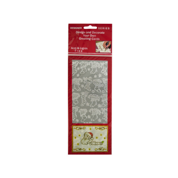 Use your imagination to design and decorate your own greeting cards with these charming Christmas Stockings Silver Foil Stickers featuring various stocking designs and stars. Also great for scrapbooks, photo albums, gift wrap, stationary, frames and much more. Includes one 4" x 9.5" sheet. Acid and lignin free. Comes packaged in a hanging poly bag.